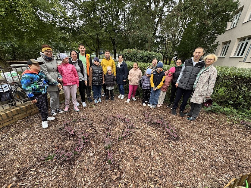 Uczniowie klas specjalnych z naszej szkoły pokazali, jak wiele radości i piękna można wnieść wspólną pracą. Razem posadziliśmy wrzosy, które nie tylko ozdobią nasze otoczenie, ale także ułożyliśmy z nich napis „SP4” – nazwę naszej szkoły!