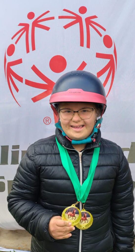 GRATULUJEMY ! 5.10.25r Alunia brała udział w Regionalnym Mityngu Jeździeckim Olimpiad Specjalnych. Zdobyła dwa złote medale. Jeden w Ujeżdżeniu, a drugi za Bieg z Przeszkodami! Następny» «Poprzedni