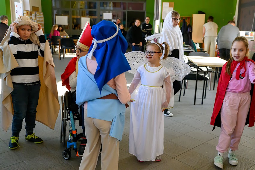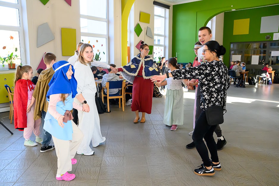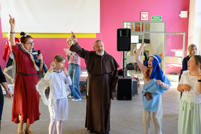 31 października odbył się, na dużych przerwach, nasz drugi Szkolny Bal Wszystkich Świętych. Wzięli w nim udział wszyscy chętni uczniowie naszej szkoły. Przy dźwiękach takich przebojów jak „Góry do góry” i „Taki mały, taki duży może świętym być” tańczyliśmy i świetnie się bawiliśmy. Przebrania naszych uczniów za anioły i różnych świętych były imponujące – byli wśród nich św. Jadwiga, św. Stefan, św. Józef, św. Kinga, św. Franciszek, Maryja, św. Jan Paweł II, św. Mikołaj, św. Jan, św. Kateri Tekakkwitha, św. Andrzej, św. Joanna Beretta Molla i inni. Poniżej kilka zdjęć z jednej z przerw.